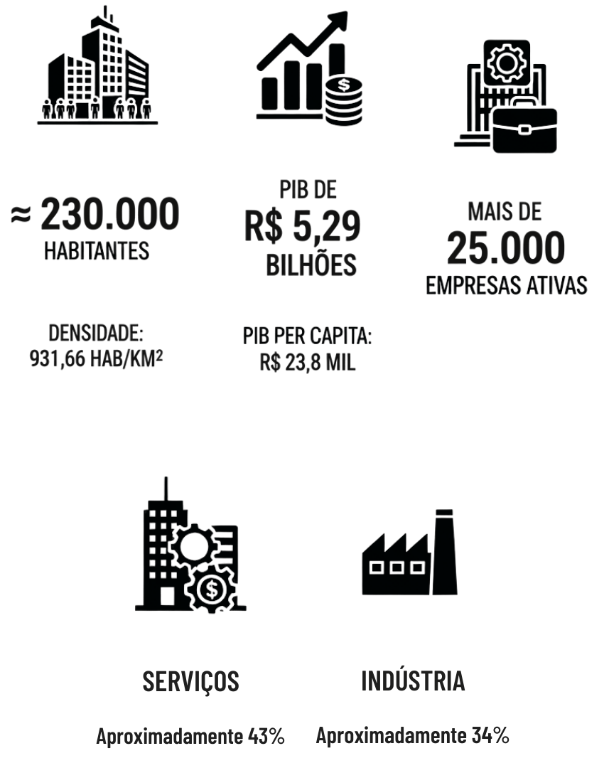 Uma cidade em expansão, com a economia alicerçada na indústria; com um comércio de mercadorias e serviços consistente, e, portanto, vocacionada para ter o seu Shopping de vizinhança completo.